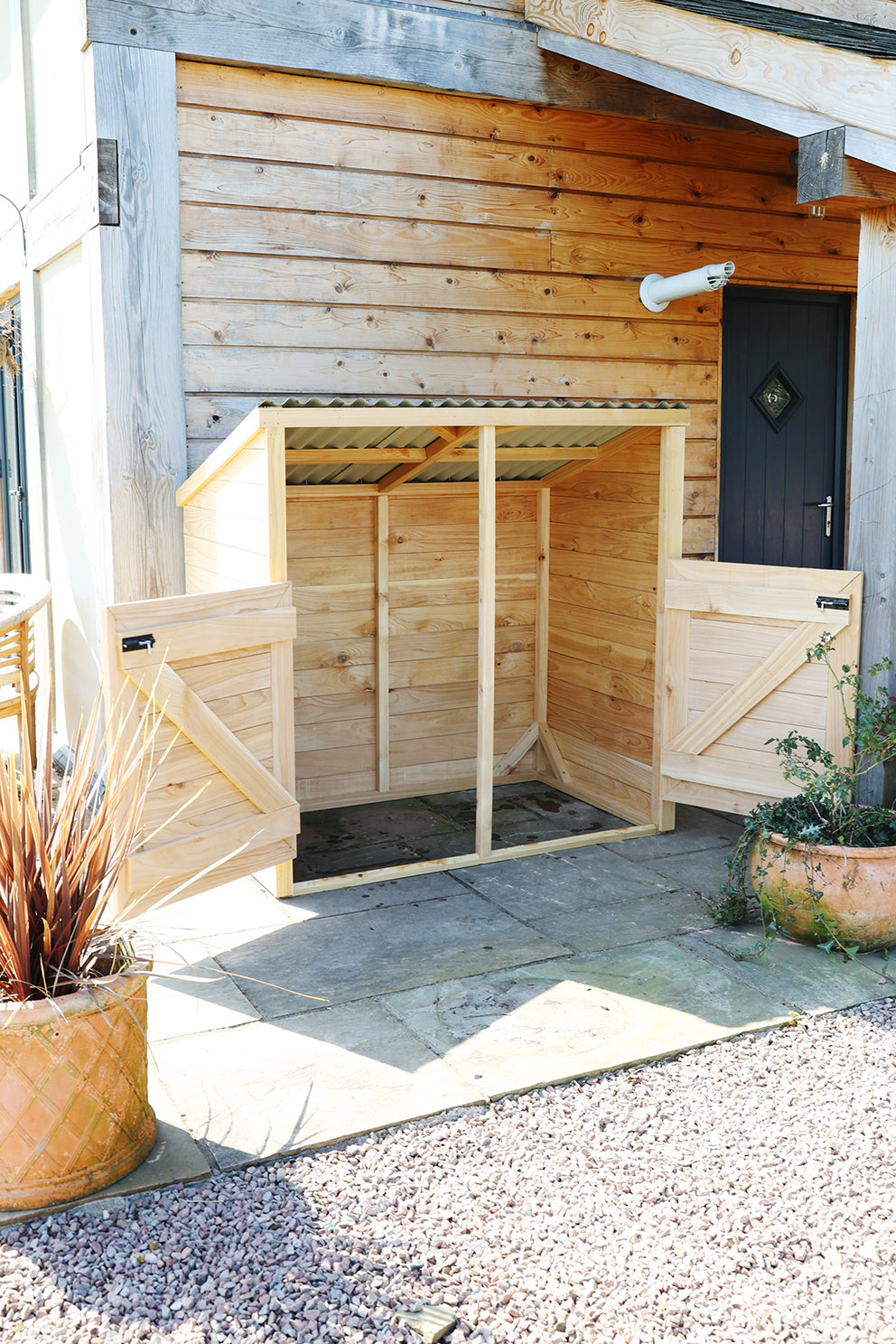 The saloon style doors come with sturdy bolt locks and the design allows airflow while keeping contents out of sight, helping to maintain a tidy and considered outdoor space.